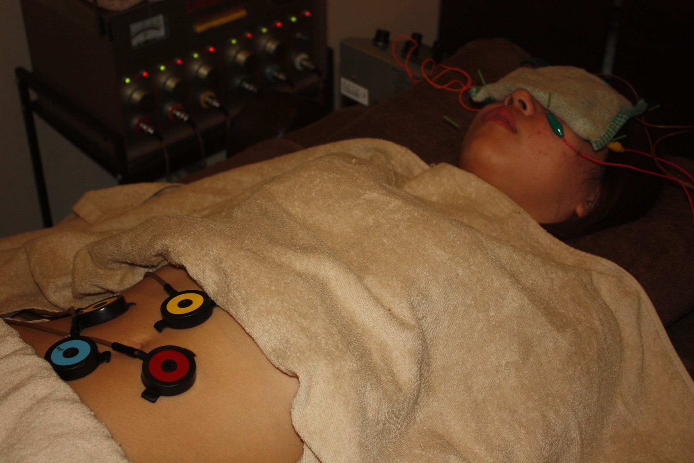 施術はお腹だけでなく、手足や背中など、全身のツボを組み合わせて行います。お腹の緊張がゆるみ、施術中にお腹が「グルグル」と鳴る方も多いです。