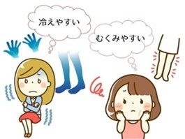 女性は男性に比べて筋肉量が少なく、月経周期によってホルモンバランスが変動するため、冷えやすく、むくみやすい傾向にあります。