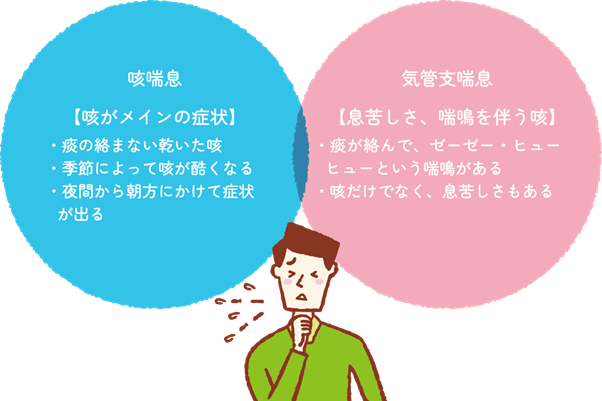 咳喘息は気管支喘息とは異なり、喘鳴を伴わない咳のみが症状の疾患です。