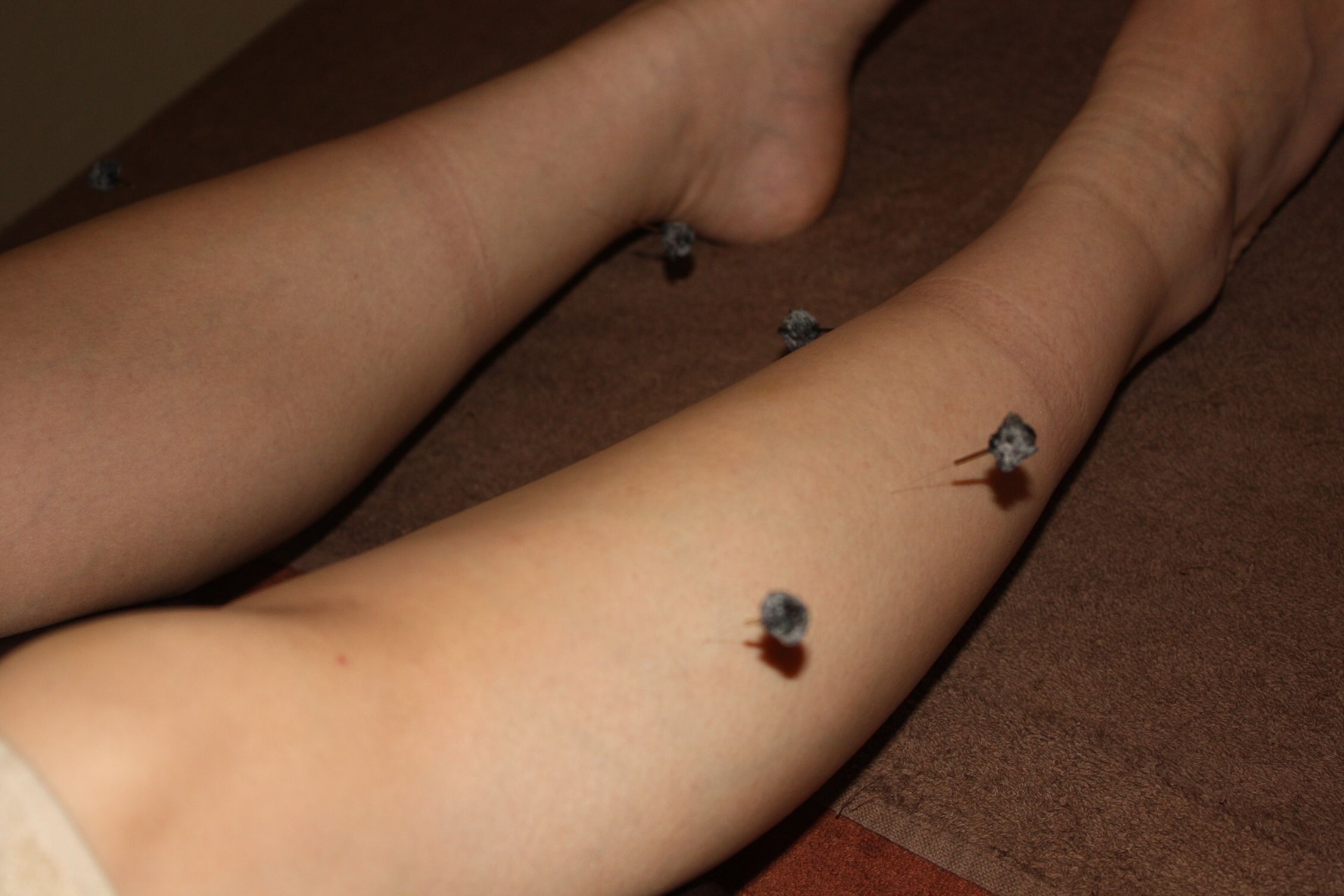 お灸を用いることで、血行を促進させ炎症の回復を助けることができます。特に、足の裏や足首周りの経穴(ツボ)に温熱刺激を与えると、足全体の血流が良くなり、痛みが和らぐことが多いです。