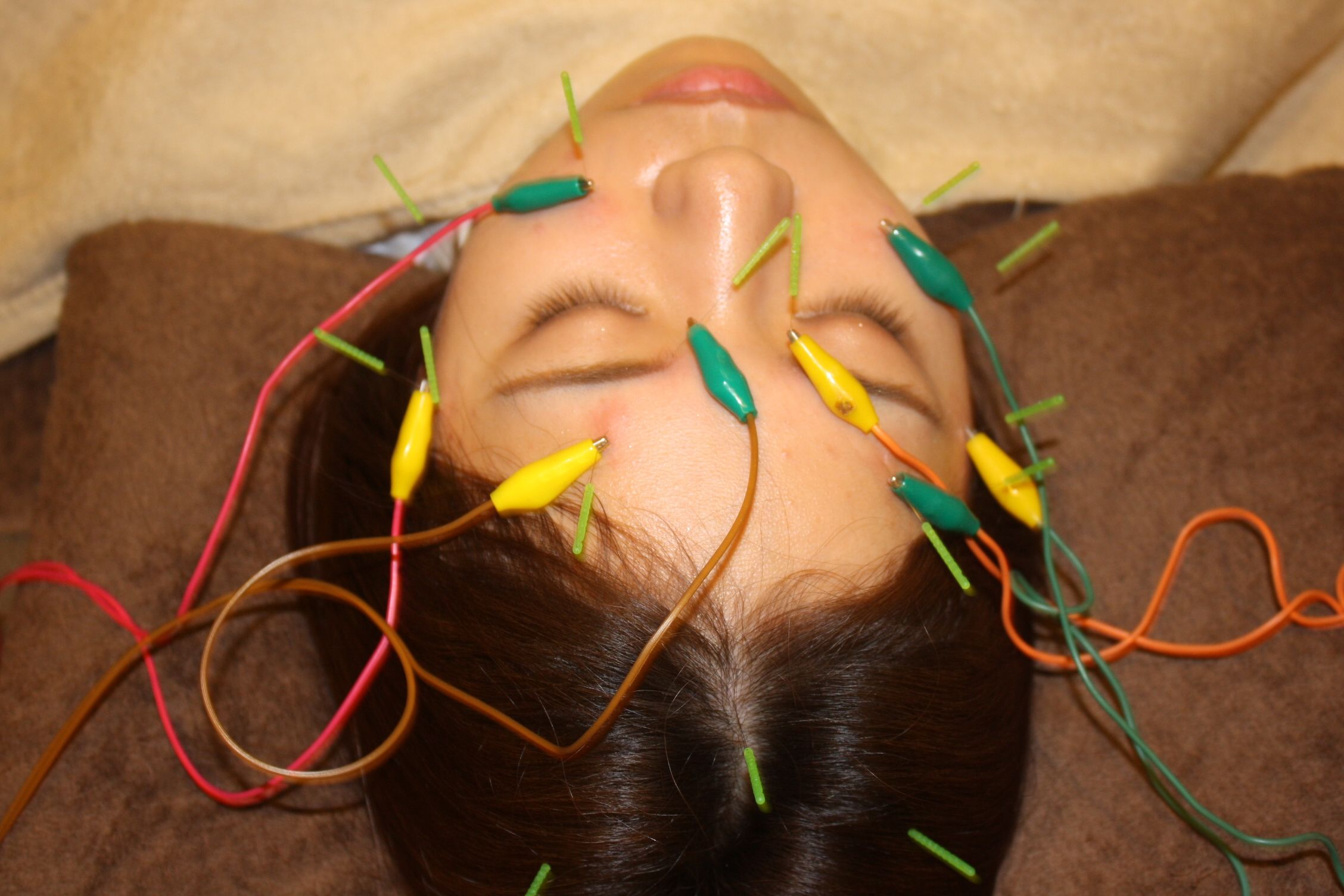 目の周囲のツボ(攅竹・陽白・絲竹空など)に鍼を行い、直接筋肉の緊張を緩和します。